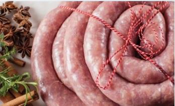Prisvindende julemedister lavet på svinekød (Duroc grise), god suppe, æbler, timian og hemmelige krydderier.